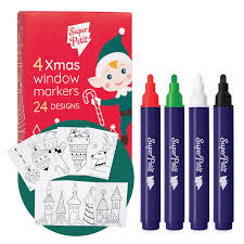 4 markers pour vitre et 24 modèles de décoration "Noël"